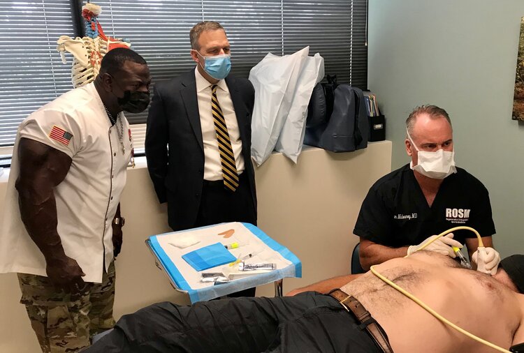 U.S. Congressman Scott Perry (R-PA) came to the clinic with Celebrity Chef Andre Rush in September 2020 to get a more detailed look at SGB. Congressman Perry has introduced legislation (HR 5648 TREAT PTSD Act) to direct the VA to offer SGB as a treatment option to veterans. Chef Rush, a veteran himself, is a strong proponent, having had the SGB reduce his own symptoms of PTSD.